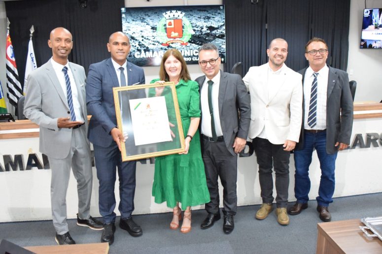 Primeira mulher a presidir o Conselho Regional de Engenharia e Agronomia do Estado de São Paulo, o CREA-SP, a rio-clarense Lígia Marta Mackey esteve no Plenário da Câmara Municipal na noite da última terça-feira, 2/12, onde recebeu o título de Cidadã Emérita. A homenagem aconteceu por intermédio do Decreto Legislativo 738/2025 de autoria do vereador Elias Custódio (PSD).